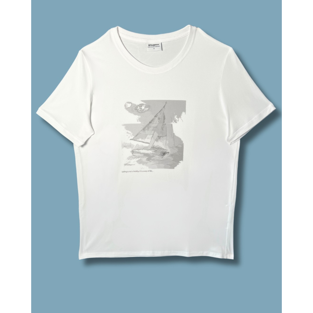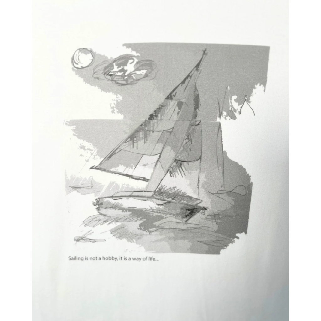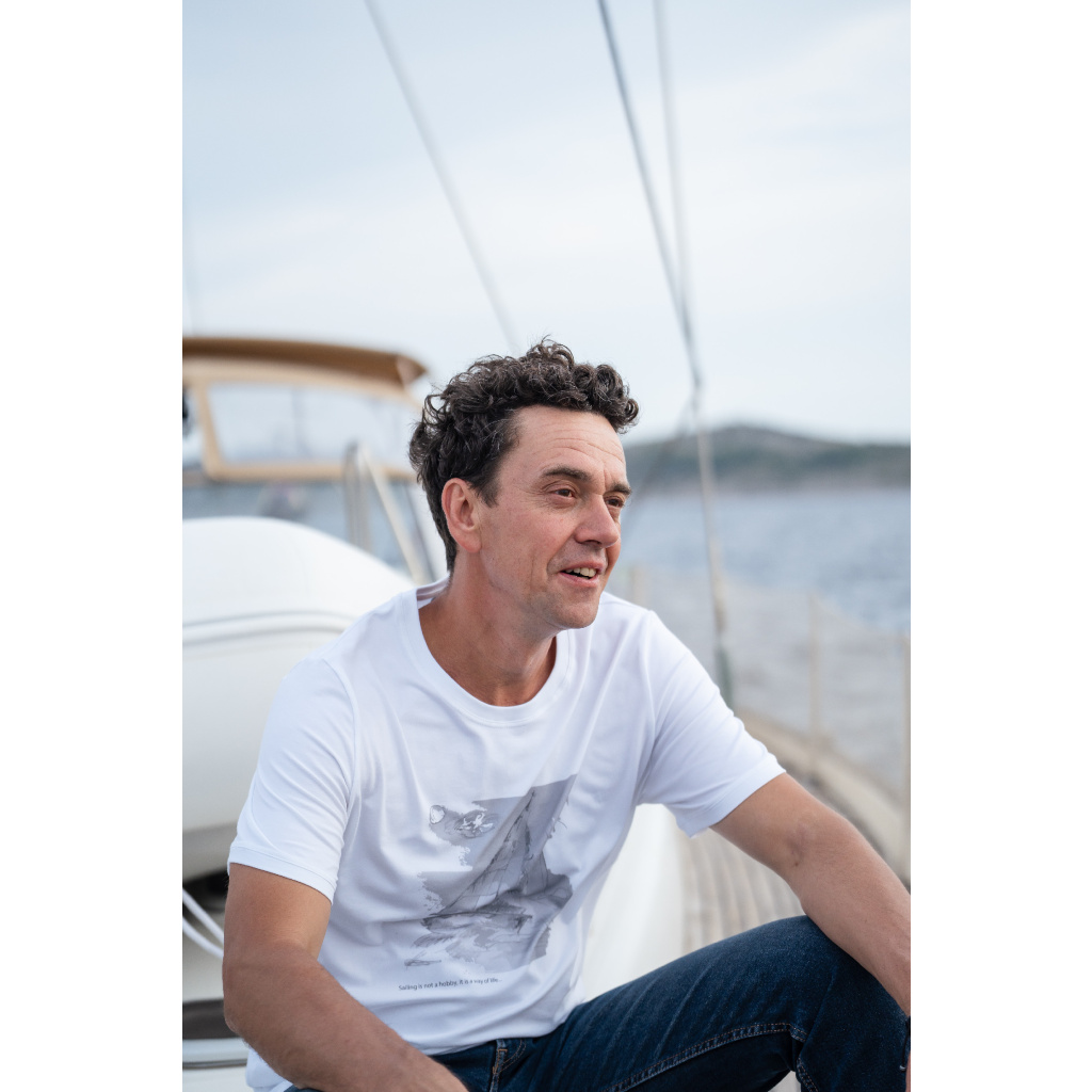 This men’s white T-shirt is made from high-quality cotton, ensuring maximum comfort and breathability throughout the day. The original sailboat print on the front gives the design a nautical touch and adds a fresh, dynamic look.