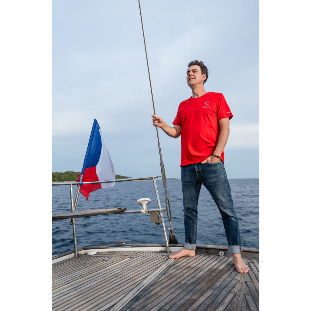 Toto pánské červené triko je vyrobeno z kvalitní bavlny, což zajišťuje maximální pohodlí a prodyšnost po celý den. Originální potisk plachetnice s nápisem na přední straně trika vnáší do jeho designu námořní nádech a dodává mu svěží, dynamický vzhled.